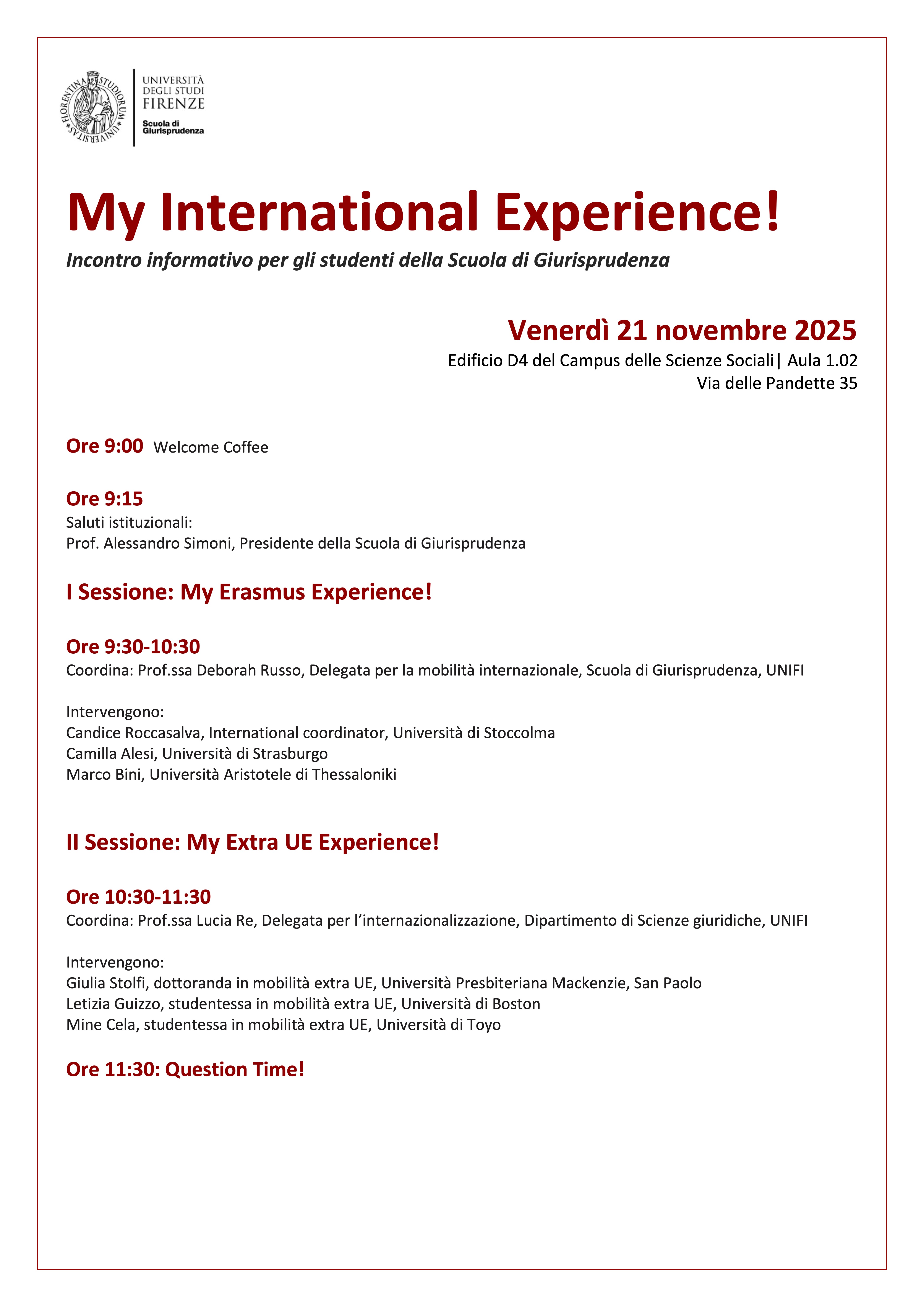 Coordina: Prof.ssa Deborah Russo, Delegata per la mobilità internazionale, Scuola di Giurisprudenza, UNIFI