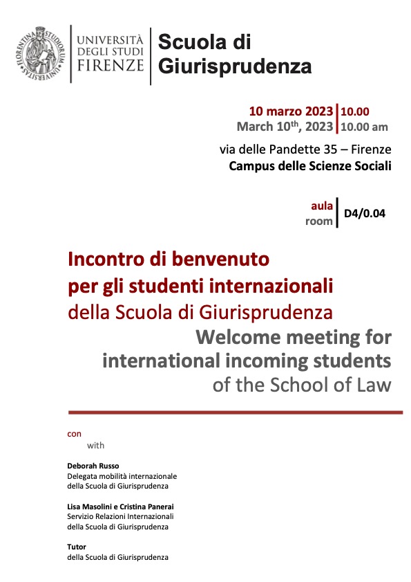 Incontro di benvenuto per gli studenti internazionali della Scuola di Giurisprudenza