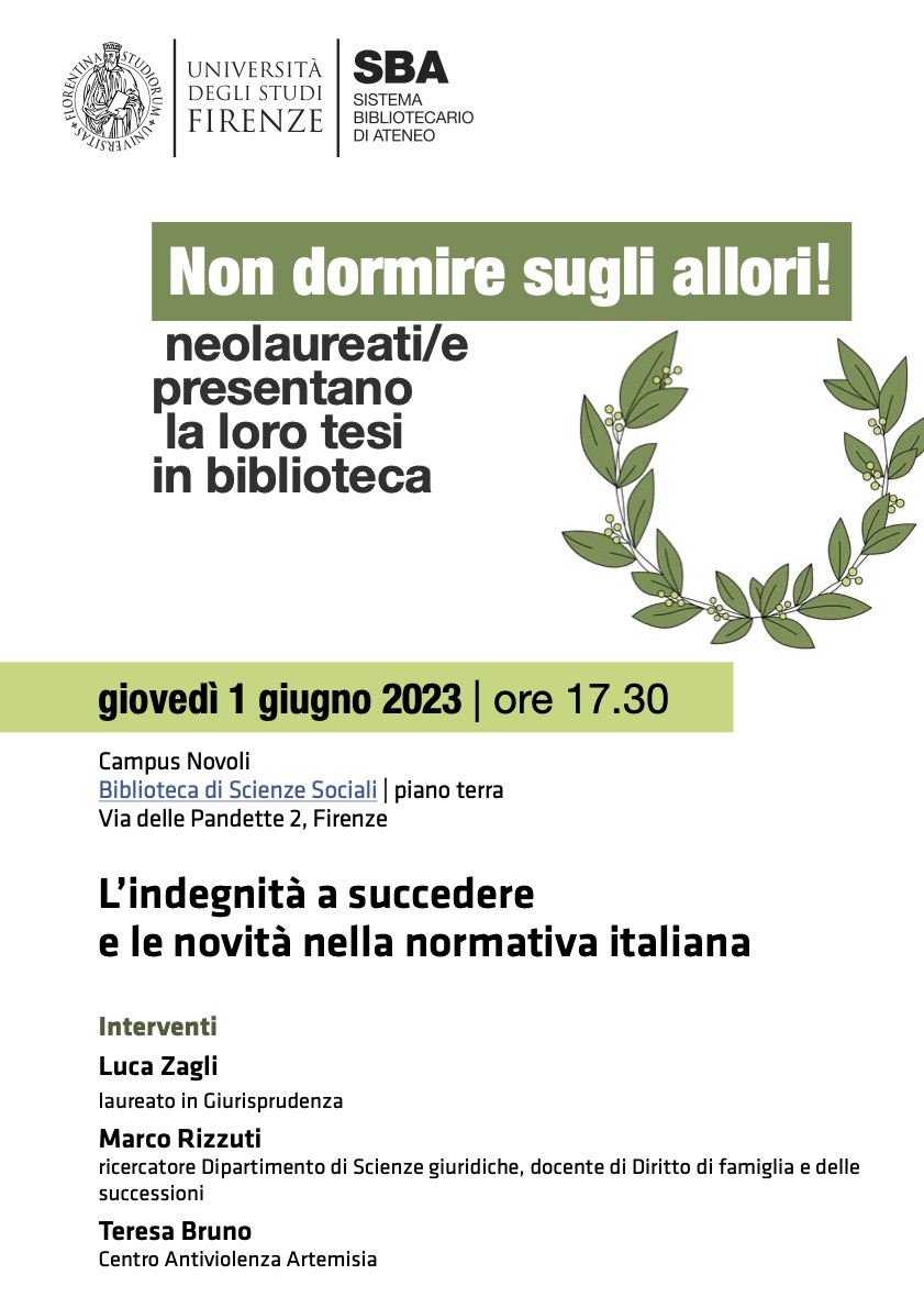 Tutte le informazioni sull'iniziativa sono disponibili nella pagina https://www.sba.unifi.it/p1999.html