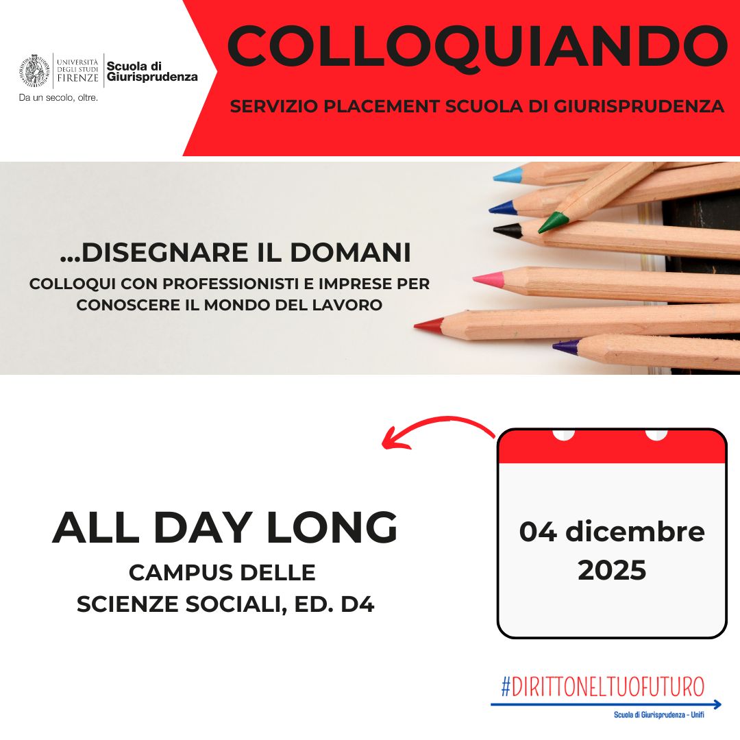 Dialoga con lo Sportello Placement, per maggiori informazioni scrivi a: placement(AT)giurisprudenza.unifi.it e richiedi un appuntamento presso i locali della Presidenza, Edificio D1, II Piano.