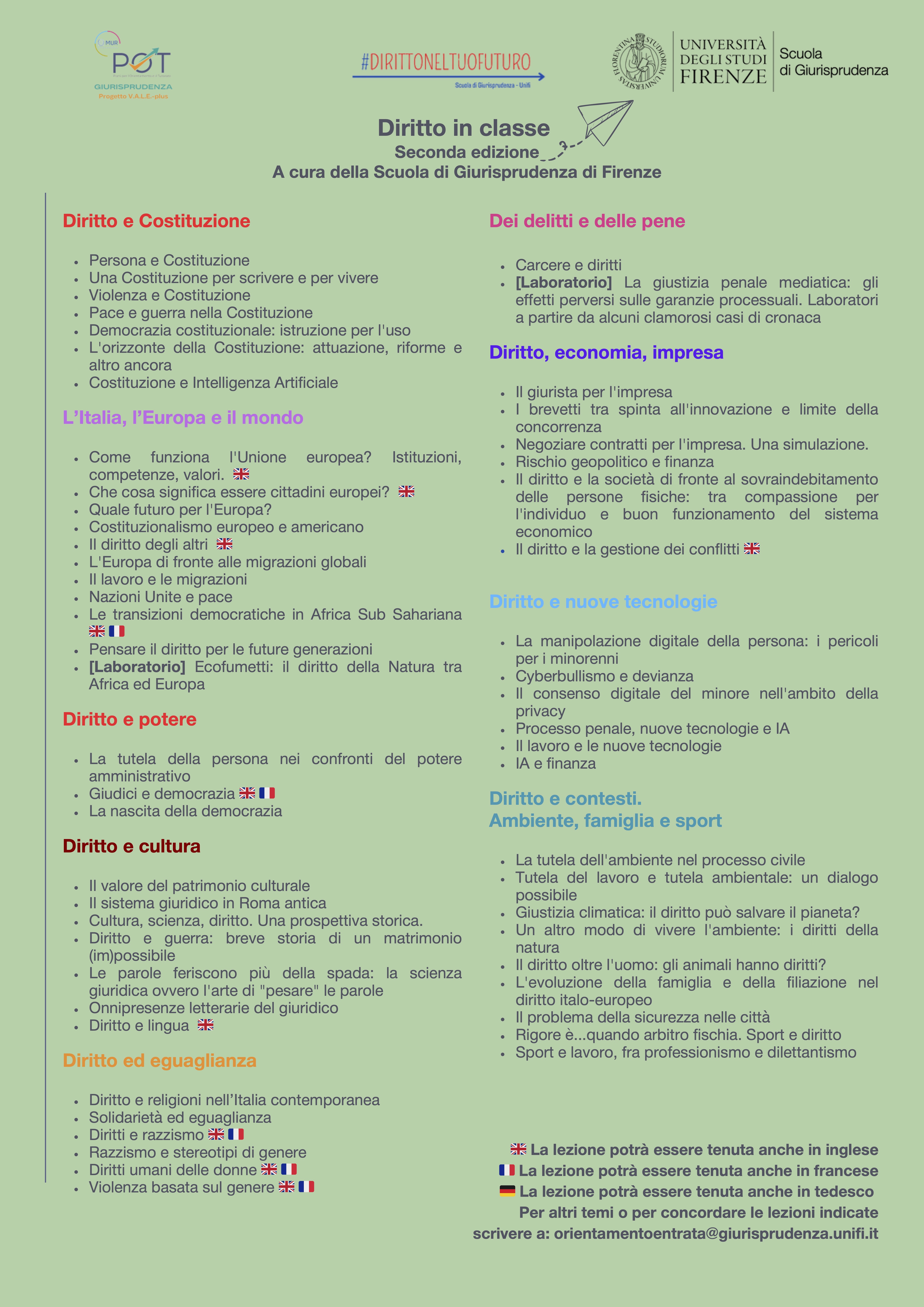 Per maggiori informazioni inviare un'email a scuola(AT)giurisprudenza.unifi.it o orientamentoentrata@giurisprudenza.unifi.it